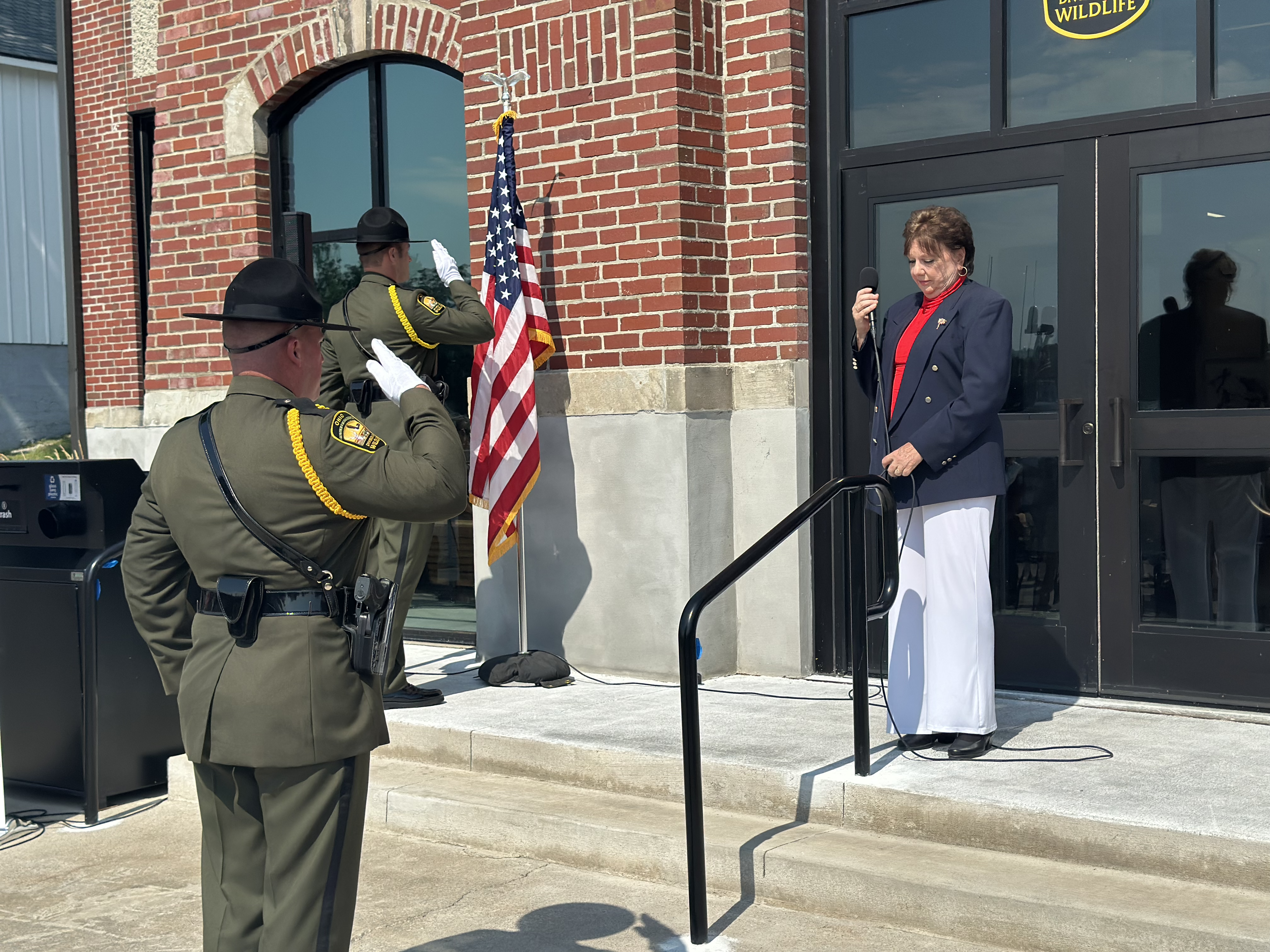 The ceremony began with the presentation of colors, followed by remarks from key state leaders including Governor Mike DeWine, ODNR Director Mary Mertz, and Kendra Wecker, Chief of the Division of Wildlife. First Lady Fran DeWine was also in attendance.