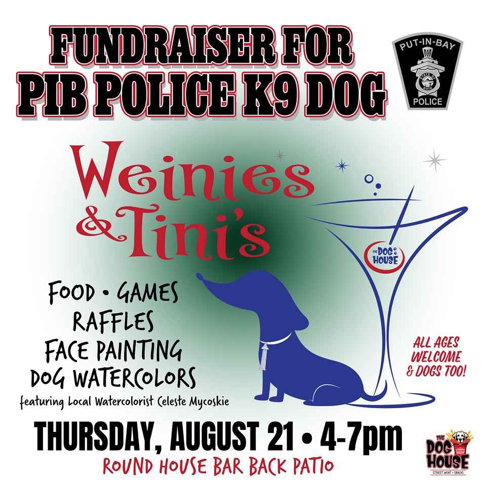 The community is coming together to support the Put-in-Bay Police Department’s effort to purchase a new K9 officer. On Thursday, August 21 from 4–7 p.m., the Dog House and Round House Bar will host a special fundraiser called “Weenies & Tini’s” on the Round House back patio.