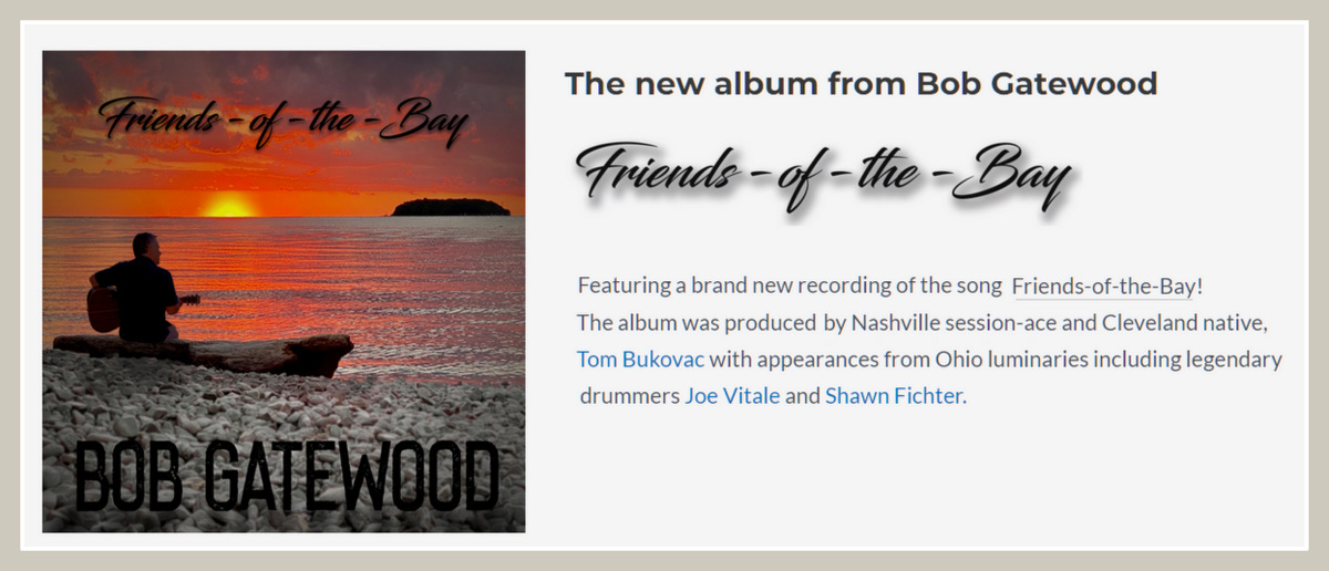 Friends of the Bay, Bob Gatewood’s triumphant song originally recorded in 1980 during a live performance at Round House Bar and released in a 2015 video, is now the title of his newest album. The album release date is Friday, 14 July 2023; however, an Apple Music pre-sale is already underway!