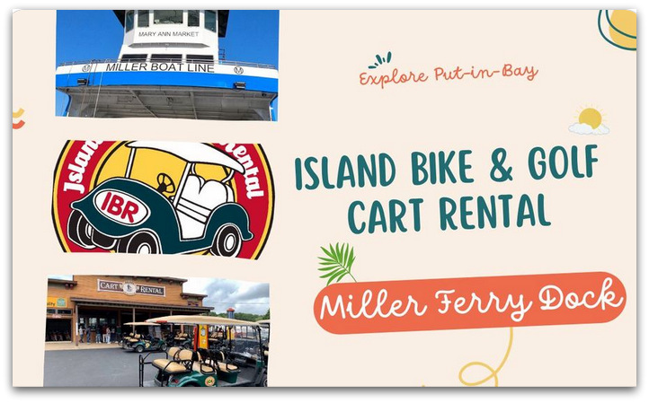 Island Bike and Cart Rental, located at the top of the Miller Ferry Lime Kiln Dock and also right by the Jet Express Dock at Put-in-Bay Harbor, provides the nicest selection of bikes on the island and a large section of 2-, 4-, 6- and 8-passenger golf carts!