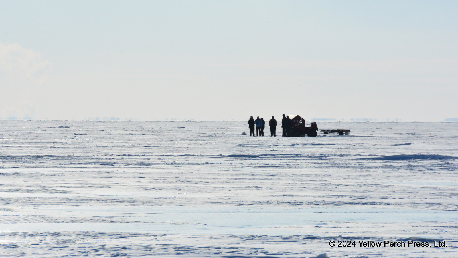 Long-awaited Lake Erie ice delivers the iconic winter ice-fishing scenes off the West Shore of South Bass Island this weekend. While no ice is “safe ice,” thickness appears to be in the vicinity of 6″ and good enough for all-terrain-vehicles and ice shanties. The conditions may not last long, as daytime temperatures will rise to the low 40°’sF and rain is in the forecast by midweek.