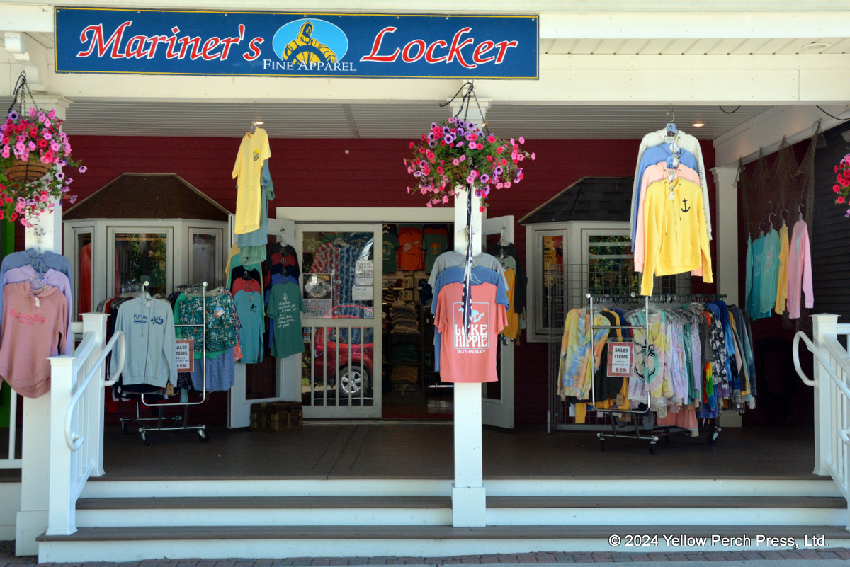 Mariners Locker, steps away from the Put-in-Bay waterfront on Hartford Avenue, displays a superb collection of bright and comfortable clothing choices for the right touch to your summer shopping celebrations.