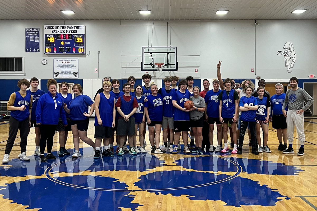 Snow accumulation cancels the regularly scheduled Put-in-Bay School basketball game for this evening, but the island provides community players for a scrimmage!   A great time was had in the gym as the Panthers took on the island squad.