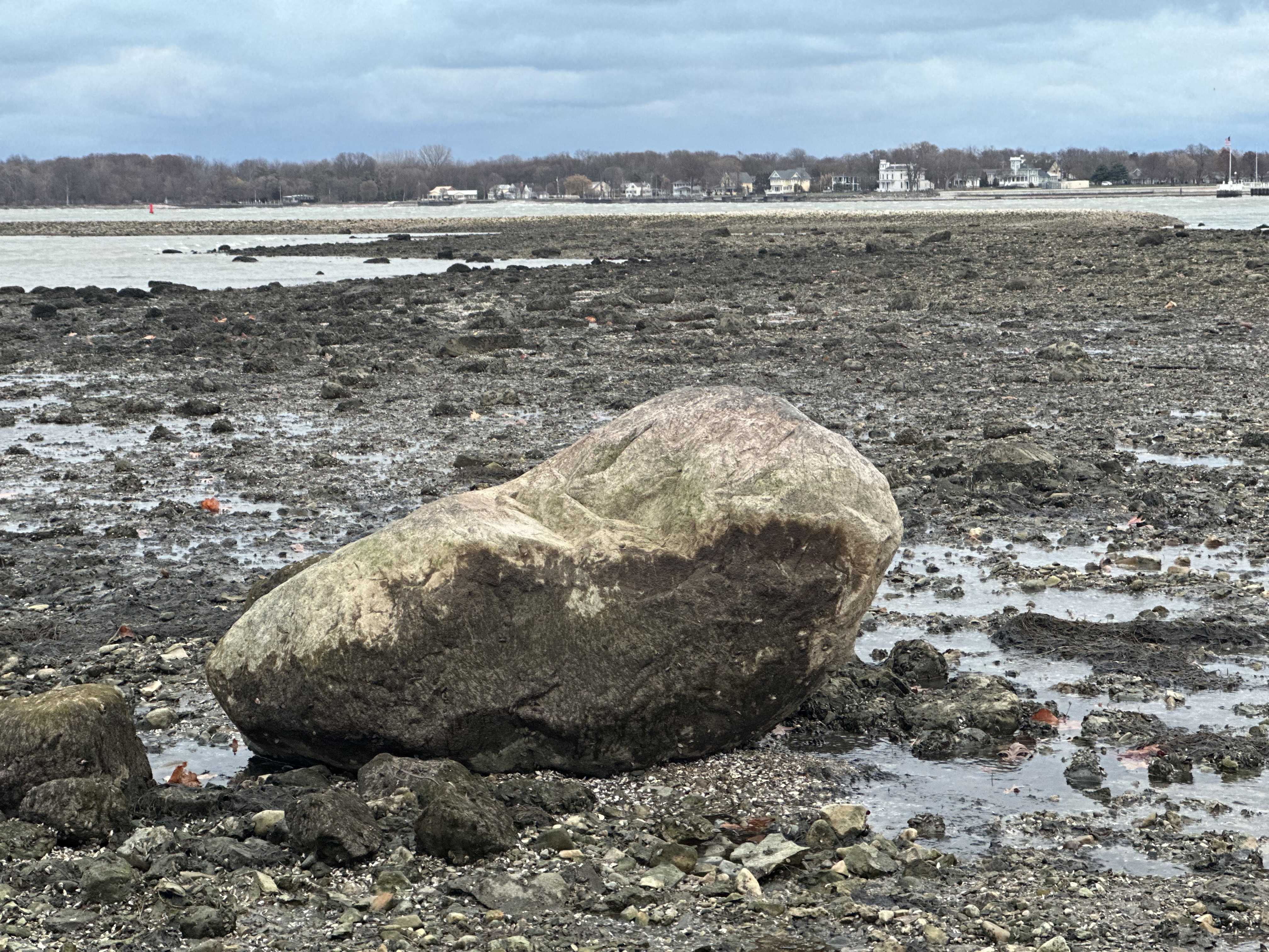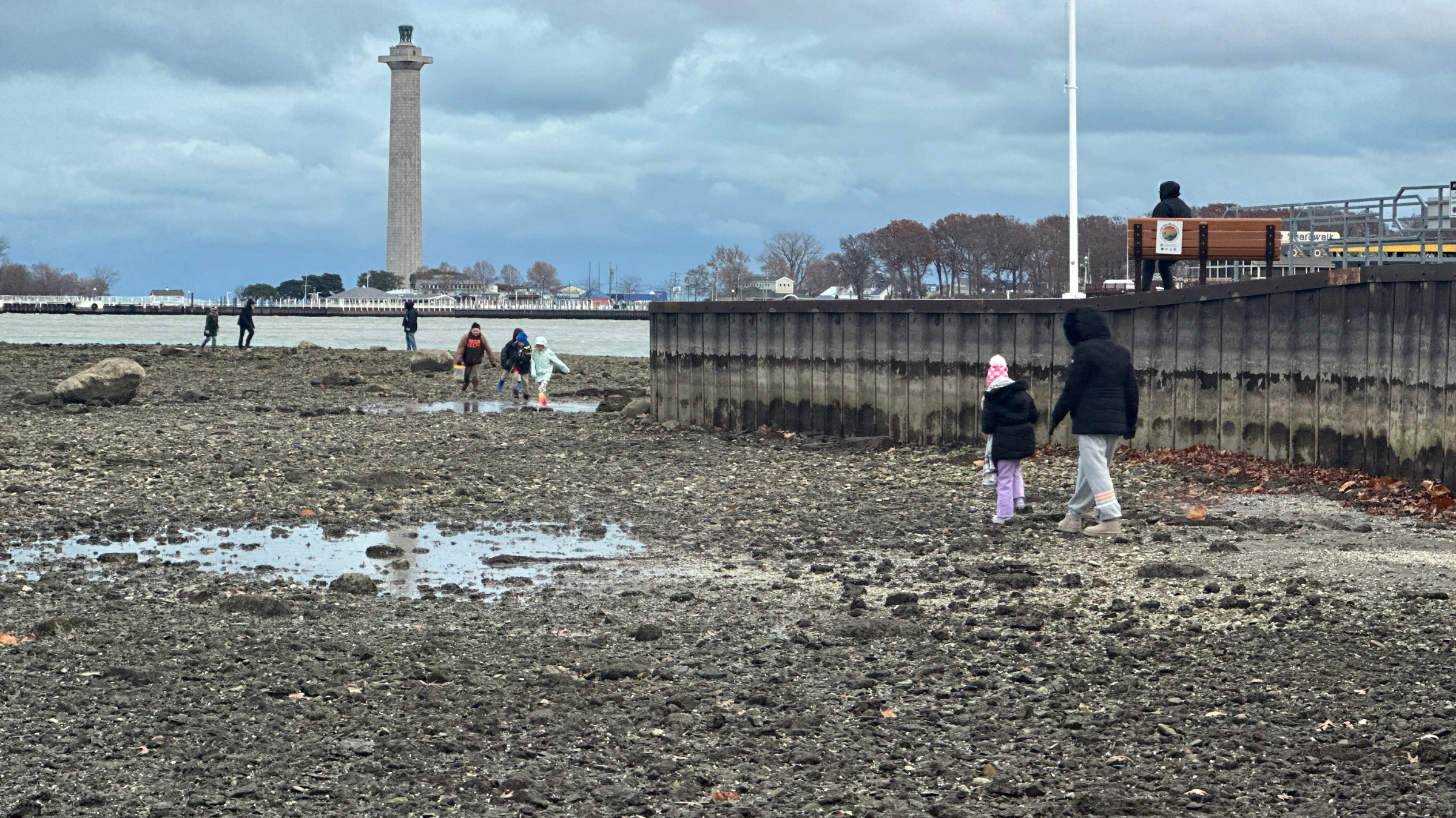 Large sections of lakebed became exposed — particularly along the downtown waterfront and near Oak Point State Park — revealing rocks, shells, and debris normally underwater. Residents walked out along the newly exposed shoreline, capturing rare views as the water receded.
