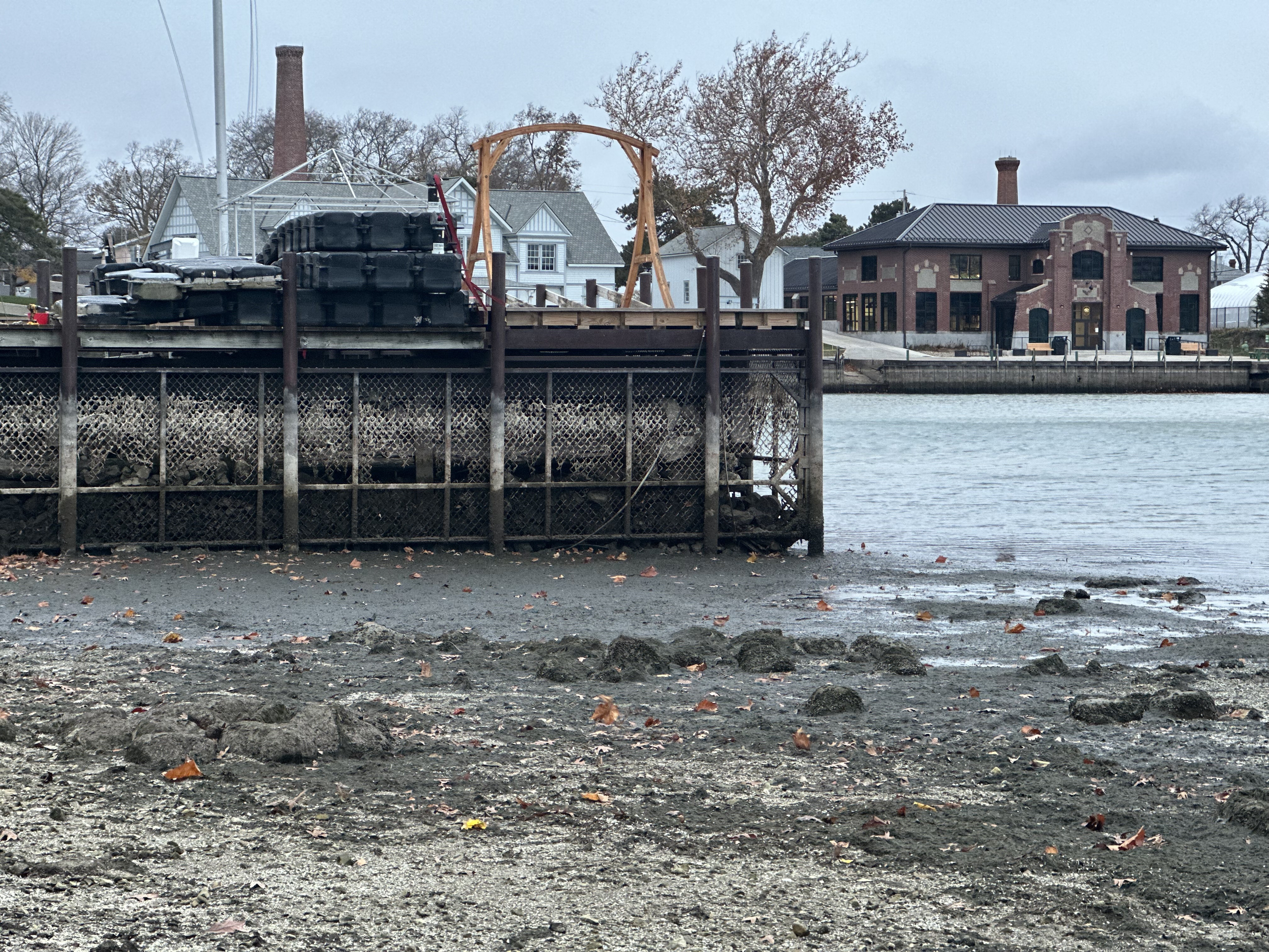 By late Wednesday morning, strong northwest winds pushed water out of the western basin, causing a sharp drop in shoreline water levels across Put-in-Bay.