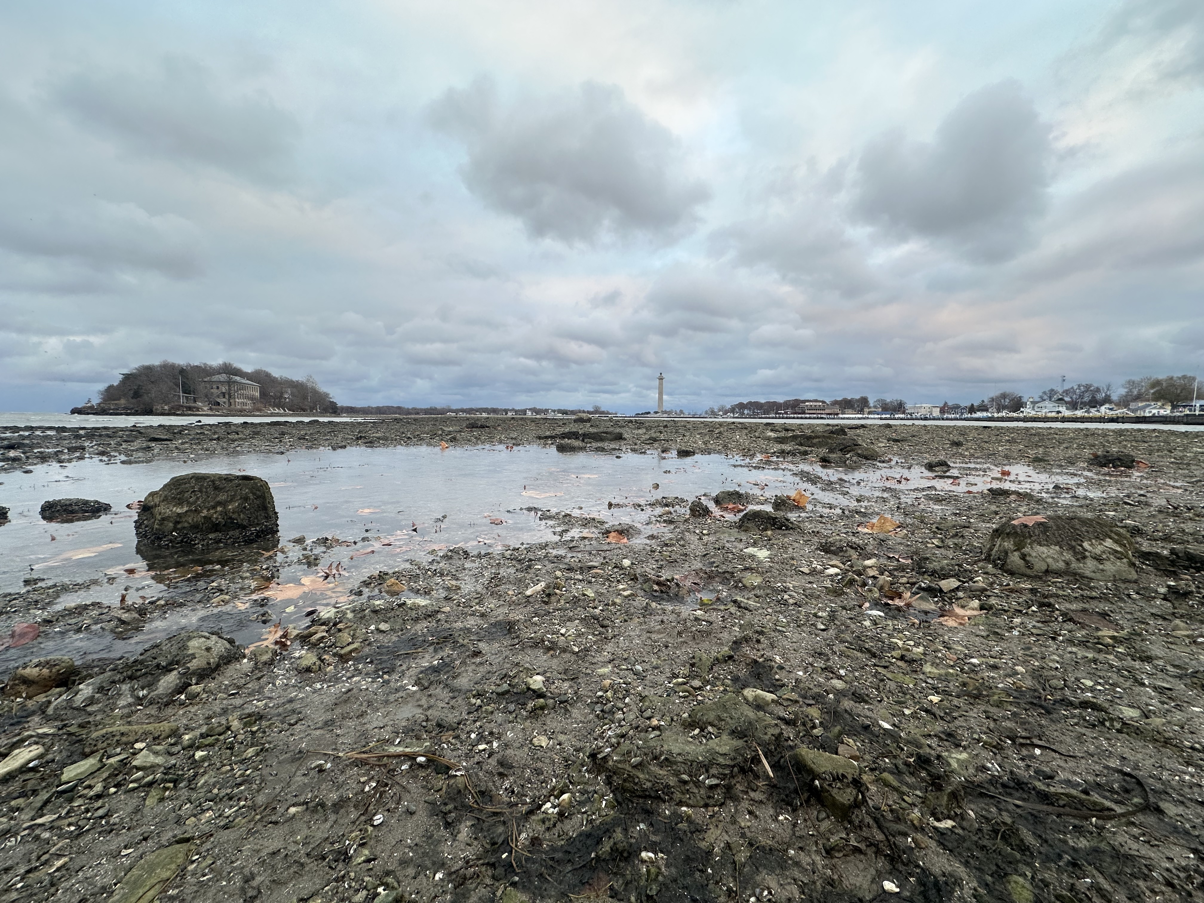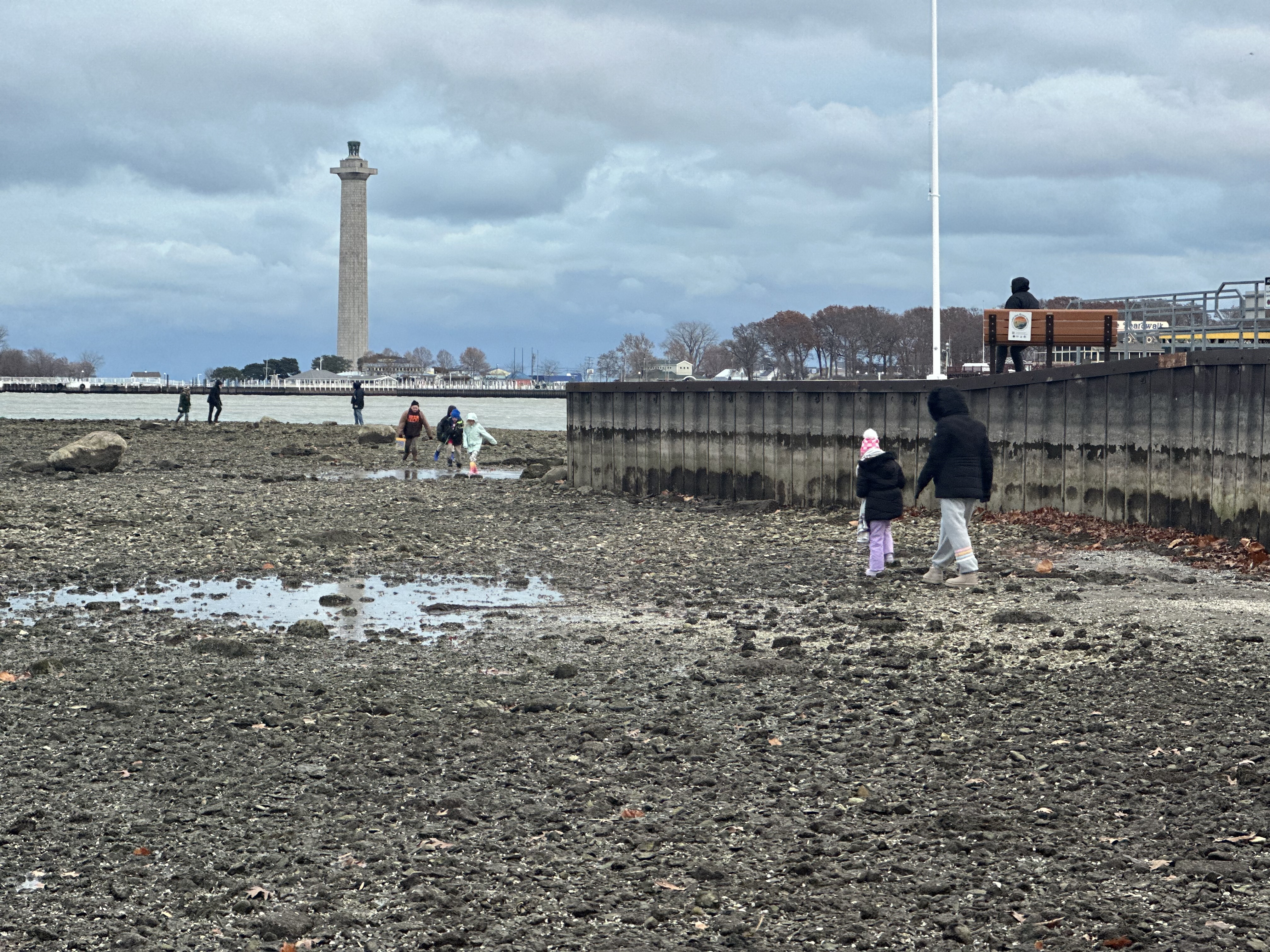 Large sections of lakebed became exposed — particularly along the downtown waterfront and near Oak Point State Park — revealing rocks, shells, and debris normally underwater. Residents walked out along the newly exposed shoreline, capturing rare views as the water receded.